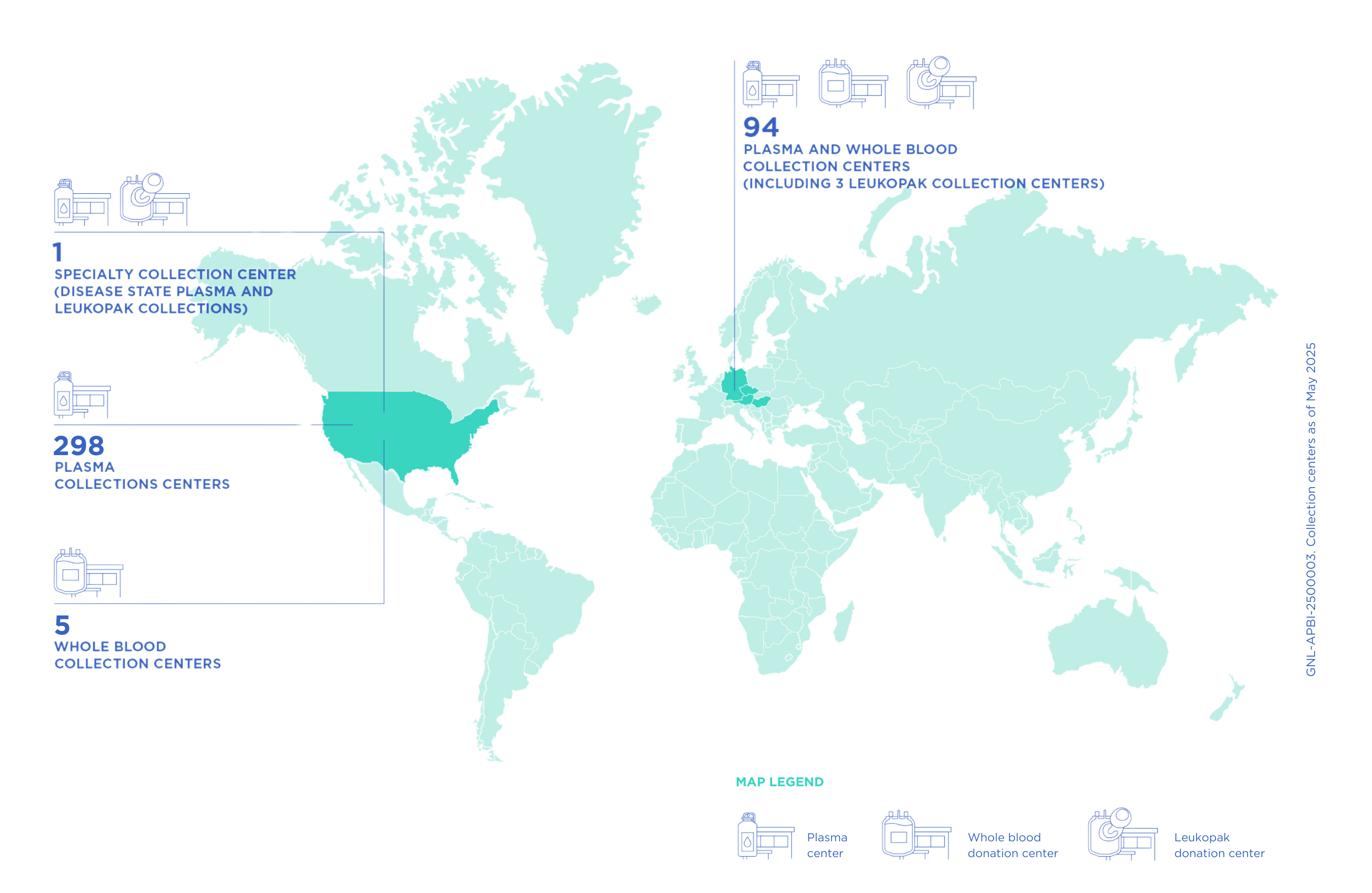 Grifols has the largest worldwide plasma donor center network with more than 10 million annual donations.